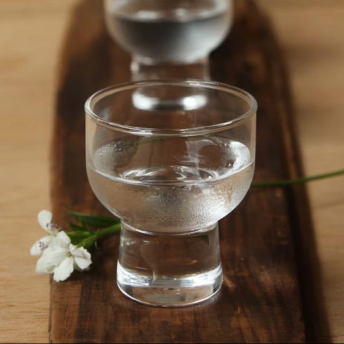 Originally designed in the 1970s by Sori Yanagi for the Japan Sake and Shochu Makers Association, this glass has become a quiet standard in sake competitions. Its inverted bell shape concentrates aroma, while a wide, stable base keeps things grounded. Made from soda glass by Toyo-Sasaki, the small form helps maintain temperature, and the gently rounded rim offers a smooth, balanced feel. Sold as a set of six—ideal for gatherings, gifting, or simply stocking your own quiet ritual.