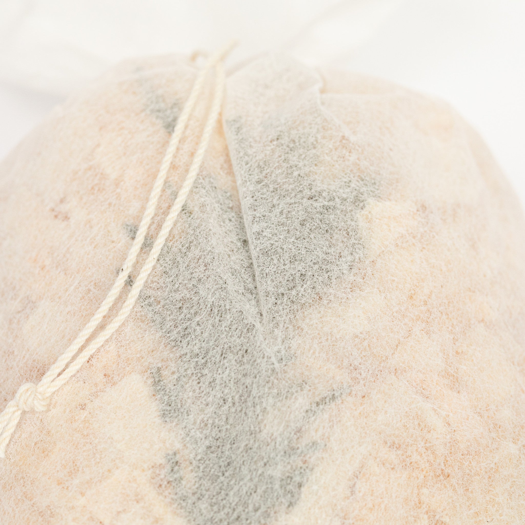 Taken from the Hinoki Cypress, the flakes release a gentle, calming aroma—something between fresh-cut wood and stillness. After each use, hang the bag to dry. You’ll get a few baths from it. Or skip the soak and hang it in a room to subtly refresh the air. Soaked in water, it can also serve as a quiet humidifier.