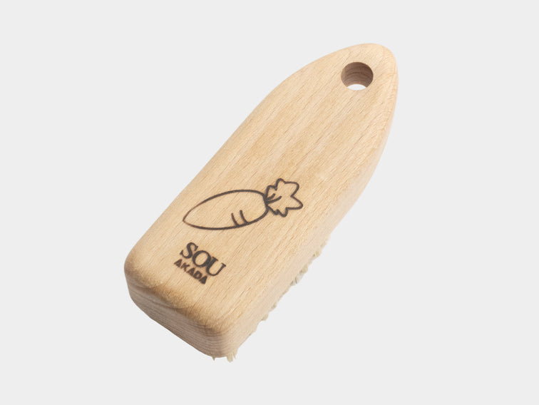 Designed for root vegetables, this brush removes dirt without stripping away the skin. Firm enough to clean, gentle enough to preserve. A simple tool that respects the integrity of what the earth gives us.